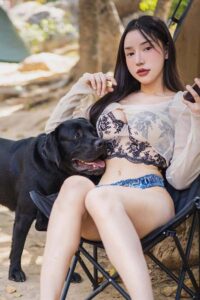 ตอนแรกดูธรรมดา แต่เด็ดมาก น้องมาด้วยชุดนอนไม่ได้นอน เดรสีดำลายลูกไม้ในธีมสาวเมดแม่บ้าน หน้าอกที่อวบล้นทะลักออกมาชัดเลย ตามมาด้วย บิกินี่ สีดำลายลูกไม้เข้าชุดกันดี ไม่เท่านั้นยังเจอท่าโพสต์แบบท่าสะพานโค้งจัดว่าเด็ดจริง ยังไม่เท่านั้น เจ้าตูบตัวเก่งที่มาหยอกเจ้าของด้วยการกระโจนใส่ อันนี้แหละช็อตเด็ด ช็อตแบบ